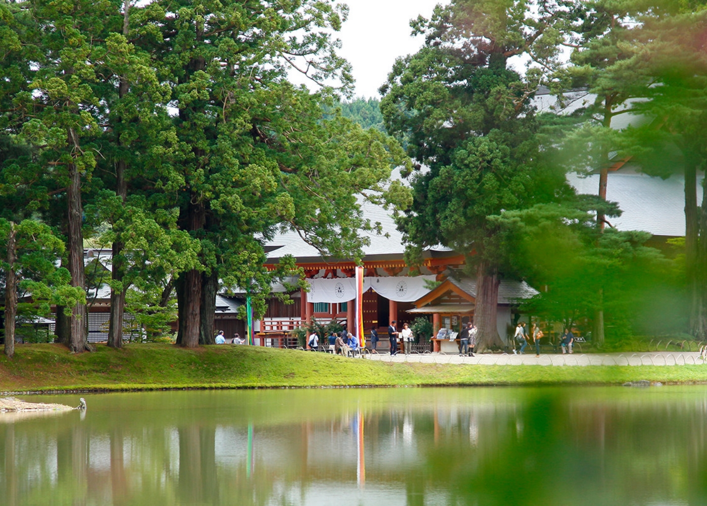 「日本有数の浄土庭園」として、国から特別史跡と特別名勝の二重に指定されている毛越寺は、中尊寺と同じく嘉祥3年(850)慈覚大師の創建と伝えられます。二代基衡が造営に着手、三代秀衡の時代にすべての堂塔が完成しました。往時には堂塔40、禅房500の規模を誇り、金堂円隆寺は「吾朝無双」と評されました。池は大泉が池と呼ばれており、平安時代の優美な作庭造園の形状を今に留め、安寧を与えてくれます。